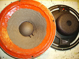Per porre rimedio a questa incresciosa situazione, si rende necessaria la sostituzione della sospensione accompagnata da un trattamento rigenerativo delle altre parti che compongono l’altoparlante (centratore e cono).